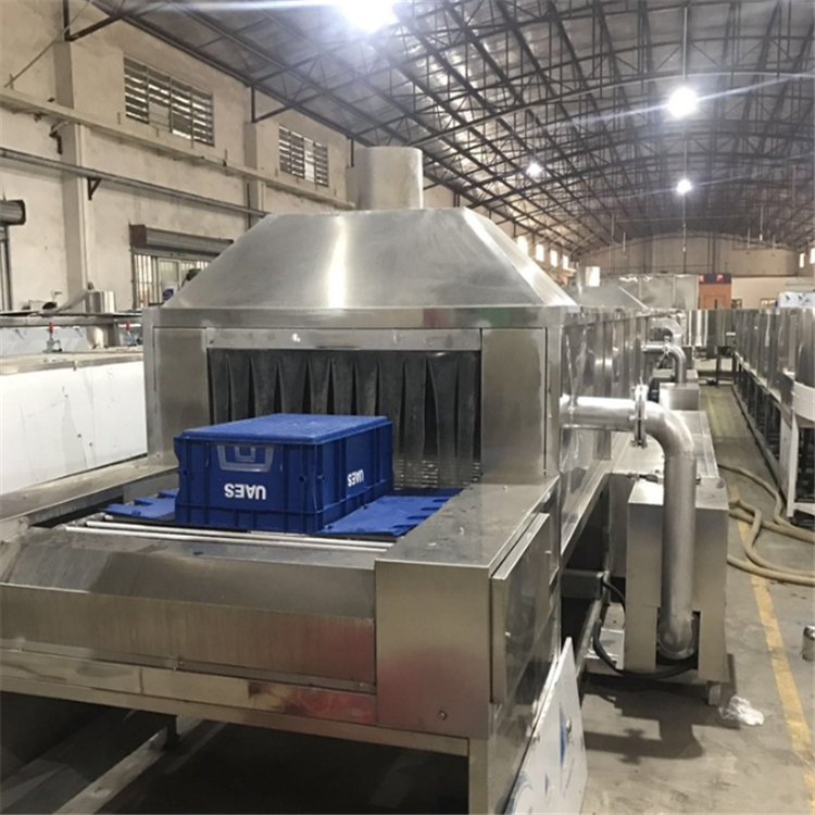 5、 周轉(zhuǎn)箱高壓清洗機 網(wǎng)帶式膠箱自動除塵清洗機采用不銹鋼360度噴頭調(diào)節(jié),分段清洗,自動統(tǒng)一供水,全線統(tǒng)一排水;